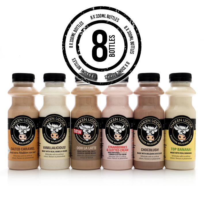 Small but perfectly formed! Our case of 8 delicious Shaken Udder milkshakes are an udderly perfect way to get your milkshake fix or to try Shaken Udder for the first time.