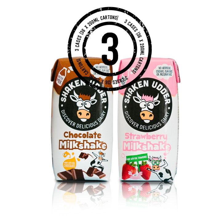 This is for 3 cases of Kids milkshakes (36 milkshakes in total), each case contains 12 x 200ml cartons of one flavour. There are two flavours to choose from Strawberry and Chocolate.